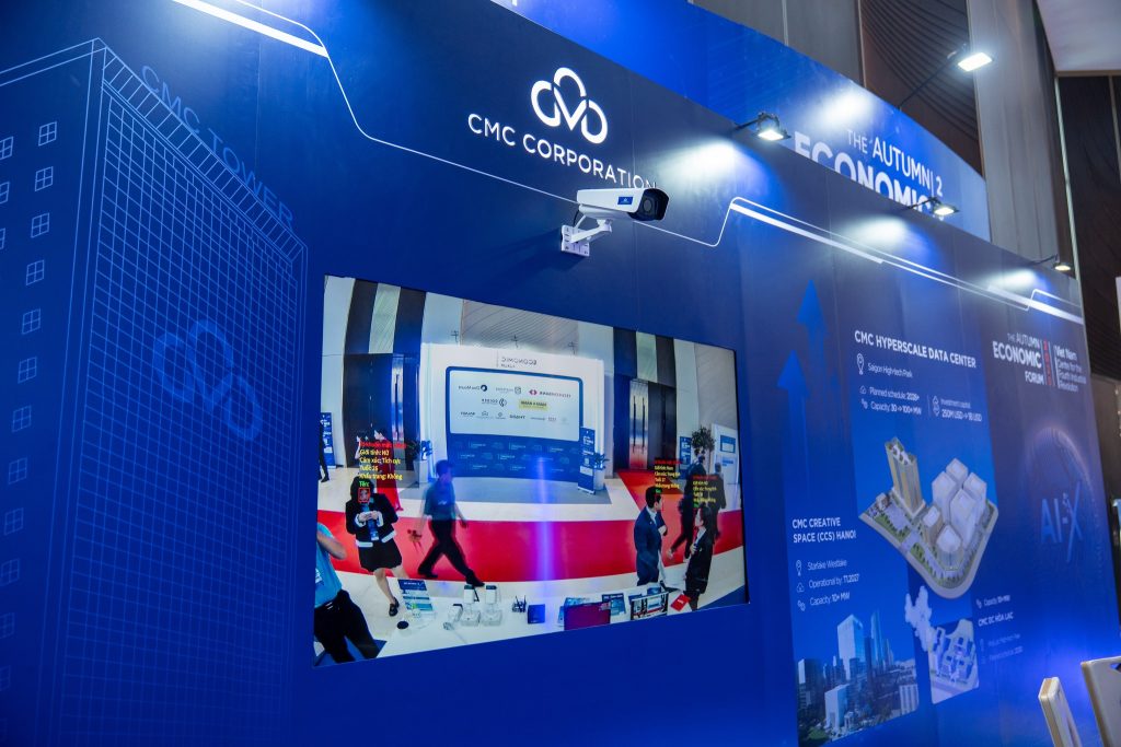 Tại khu trưng bày, CMC giới thiệu nhiều sản phẩm, dịch vụ tiêu biểu từ hệ sinh thái công nghệ mở C-OpenAI với 25 công nghệ lõi. Nổi bật là giải pháp camera thông minh CMC AI Camera do CMC làm chủ hơn 85% từ thiết kế phần cứng đến phần mềm và công nghệ computer vision, giúp nhận diện hành vi bất thường, hỗ trợ quản lý giao thông, an ninh đô thị, giám sát cháy nổ và vận hành tòa nhà.