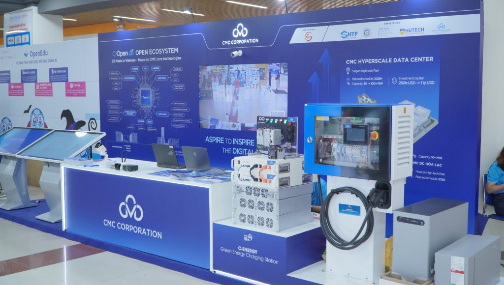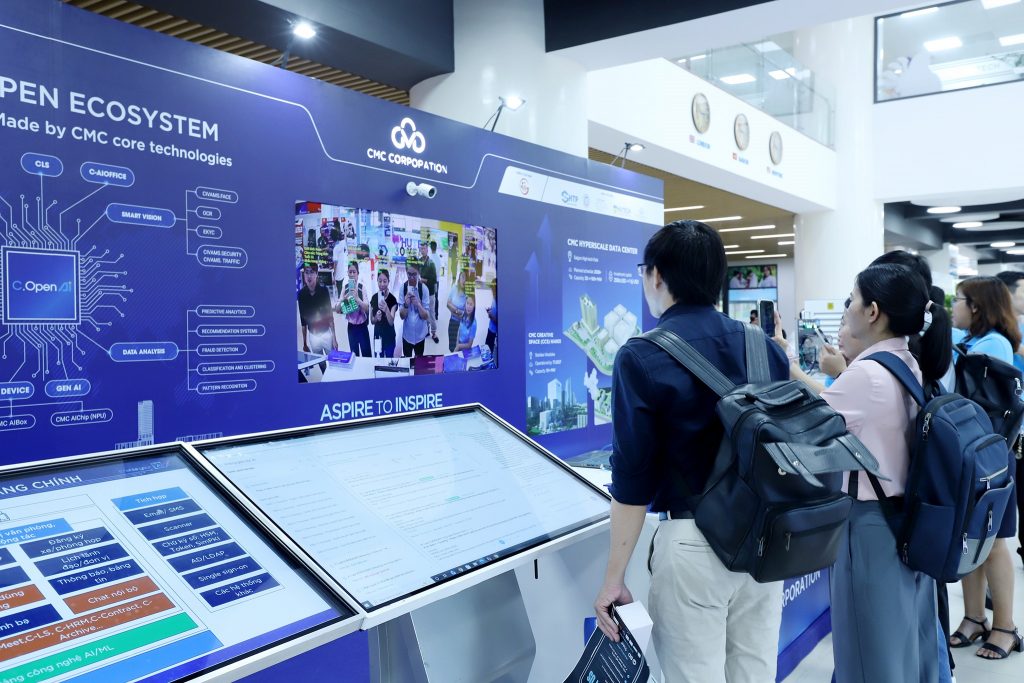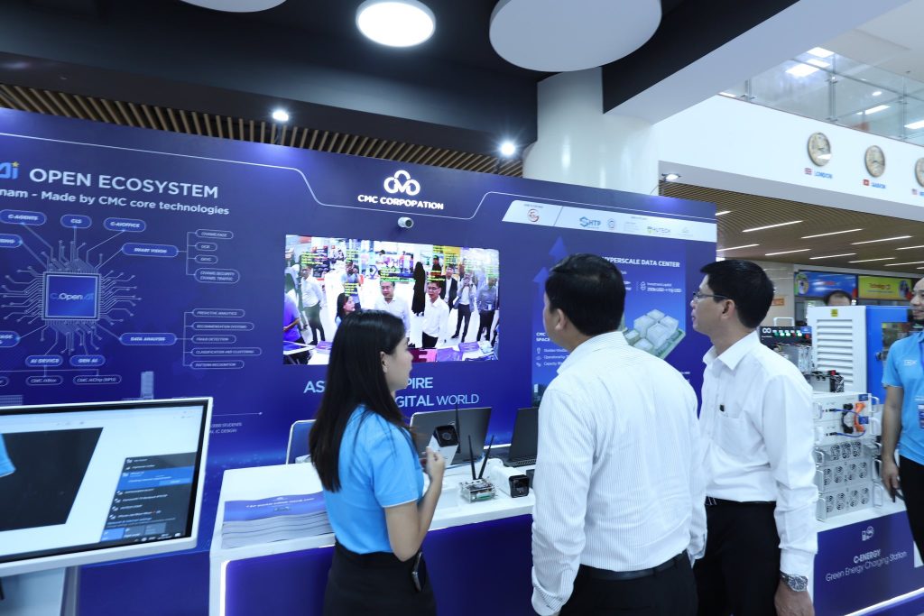 Trong khuôn khổ triển lãm công nghệ tại sự kiện, gian trưng bày của CMC là điểm nhấn nổi bật, thu hút đông đảo khách tham quan, chuyên gia và đối tác quốc tế. Các sản phẩm trình diễn đều là kết quả nghiên cứu “Make in Vietnam” của đội ngũ kỹ sư CMC, trong đó nổi bật gồm CIVAMS, CMC AIBOX & AIVISION, CLS, C-Energy, C-AIOffice. Những giải pháp này thể hiện cam kết của CMC trong việc đồng hành cùng Khu Công nghệ cao Tp HCM kết nối Nhà nước – Nhà trường – Nhà doanh nghiệp – Cộng đồng khoa học, góp phần thực thi Nghị quyết số 57-NQ/TW và Nghị quyết số 31-NQ/TW, đưa SHTP trở thành trung tâm nghiên cứu khoa học và công nghệ đa chuyên ngành, thúc đẩy vùng Đông Nam Bộ phát triển bền vững, hướng tới xây dựng Tp HCM thành trung tâm công nghệ cao, trung tâm AI của cả nước và khu vực.